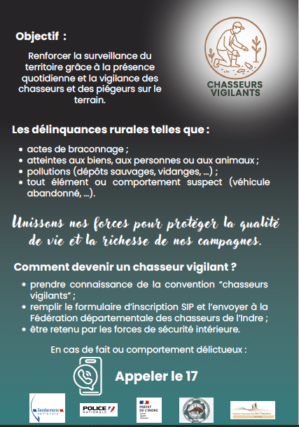 Si vous souhaitez rejoindre le réseau « chasseurs vigilants » il vous suffit de nous retourner la fiche d’inscription qui sera transmise aux forces de sécurité pour acceptation de votre candidature.